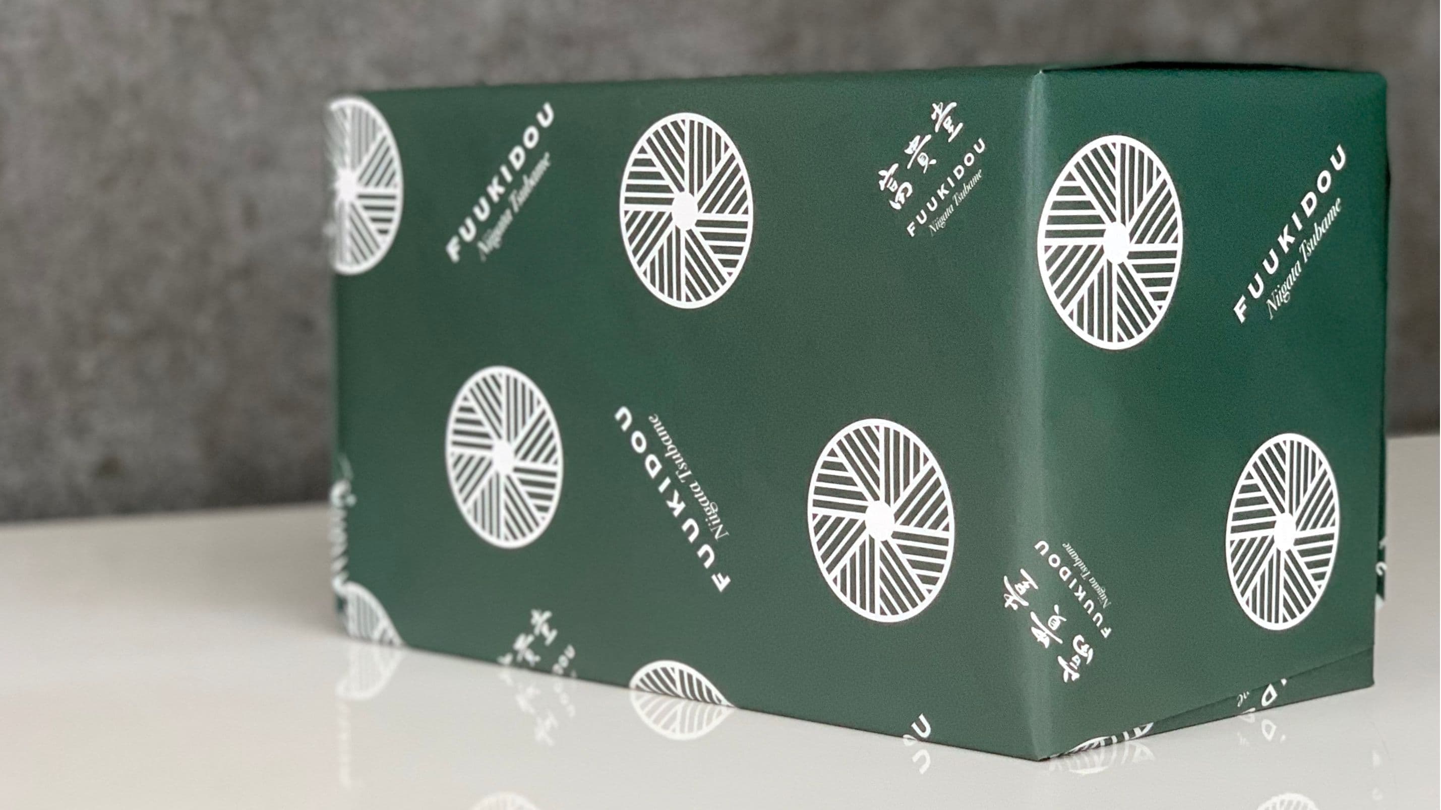 ○ 包装紙は「白地柄」「紺色柄」「富貴堂柄」